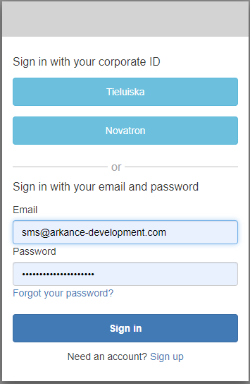 Start using the Xsite Manage -solution via Site Management by signing in. To sign in, an active subscription to the Xsite Manage is needed and active license to Machine Control -extension.
