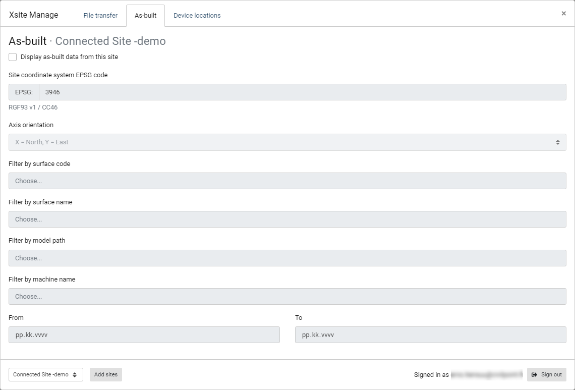 Click As-built -tab to access the as-built collected to the Xsite Manage site.