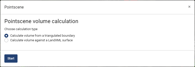 When the volume calculation is done for the first time, it is suggested to use the first option. This allows a small area to be processed, making the first calculation faster.