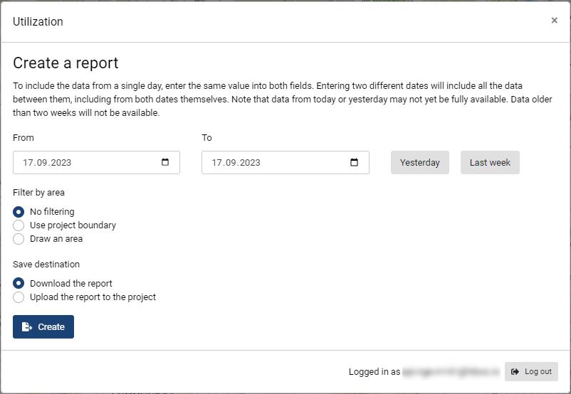 Choose the option that is desired and click Create to create the report. Creation may take several minutes, depending on the number of machines, date range and internet connection.