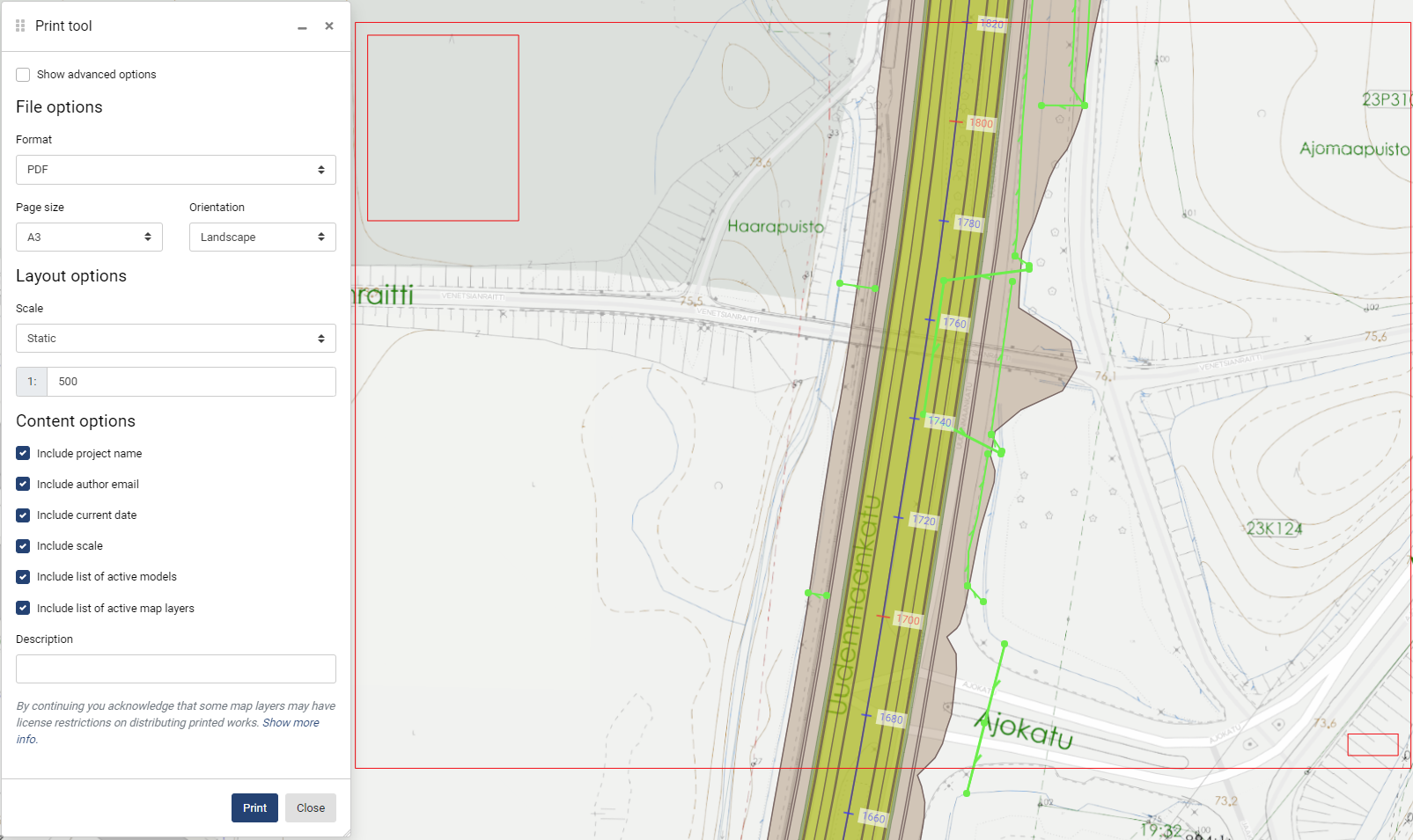 Please note that some of the map layers may have license restriction on distributing printed works. If there are license restriction, user must take care of the needed licensing.&#x20;