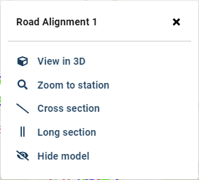 If there is a LandXML alignment visible on the map, clicking it gives multiple options: