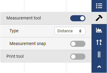 Start the measuring tool and select the wanted type of measurement. There is also a possibility use Measurement snap. This functionality snaps to the LandXML file objects for accurate measuring.
