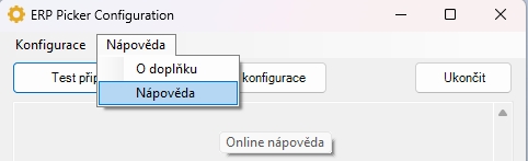Příkaz se nachází v nabídce Nápověda dialogového okna ERP Picker Configuration. Po spuštění otevře okno webového prohlížeče s online nápovědou.