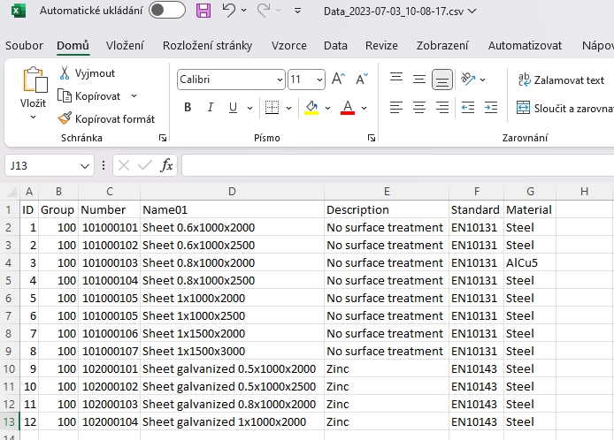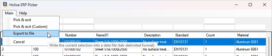 The exported file contains the complete data currently displayed in the Holixa ERP Picker window table, taking into account the filtering of values.