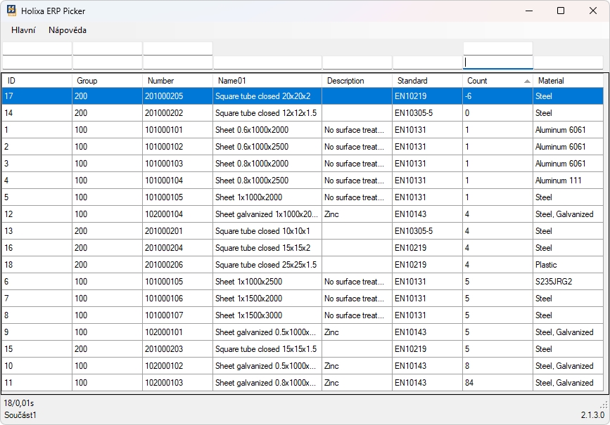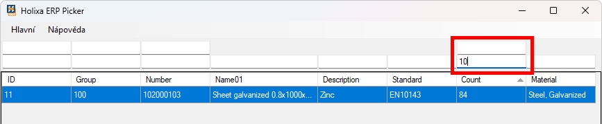 The configuration can be set so that the data table is filtered by the column and value in the configuration at startup. These are the InitiateFilterDbFieldName