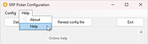 menu of the ERP Picker Configuration dialog box. When executed, it opens a web browser window with online help.