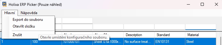 menu of the Be.Smart ERP Picker dialog box (Preview only). When run, it opens a folder with the location of the configuration INI file.