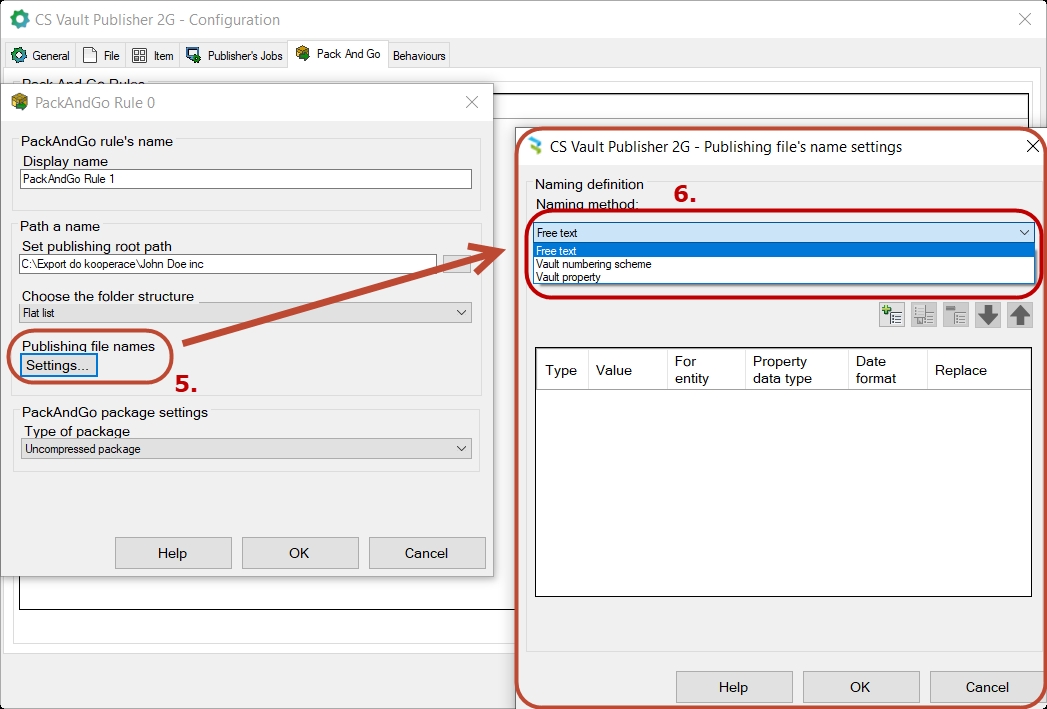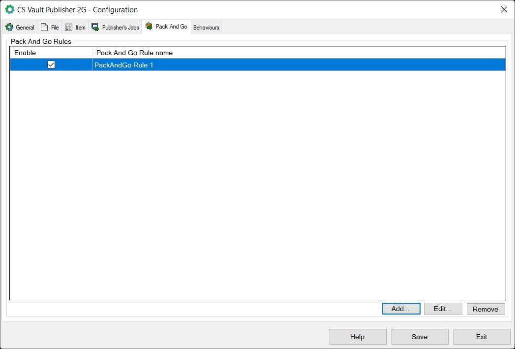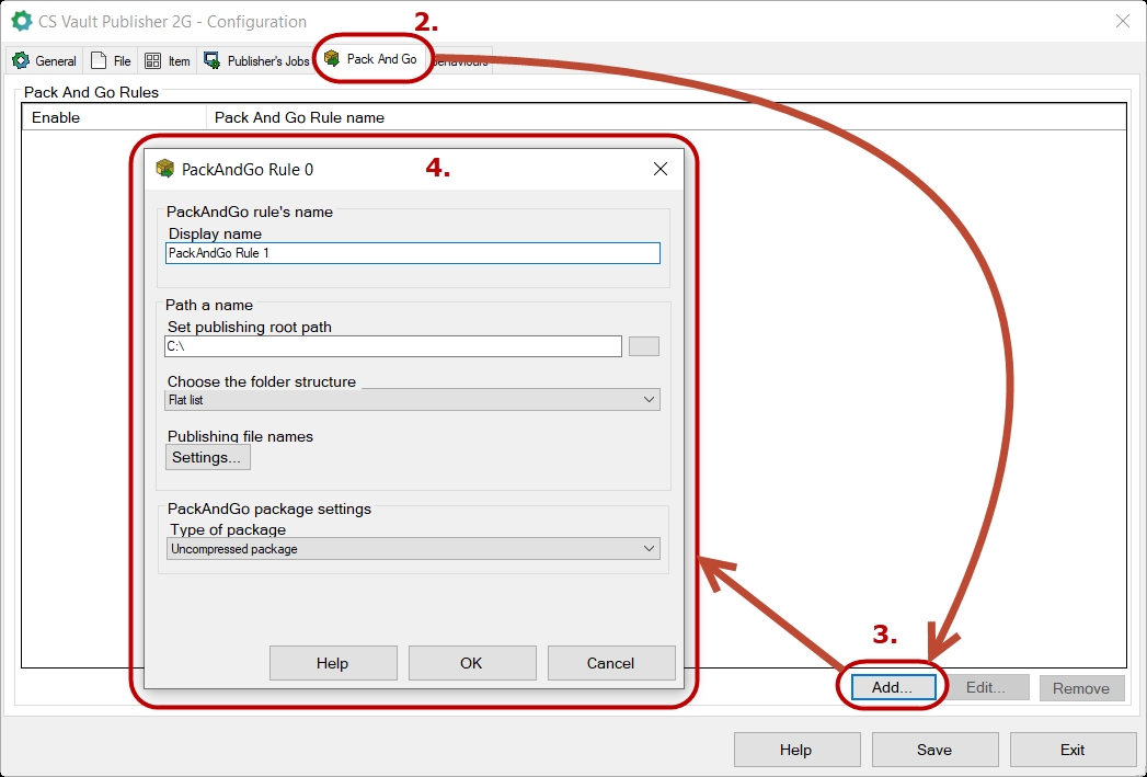 6.2 Nastavení pravidel pro Pack and Go doplňku Vault Publisher