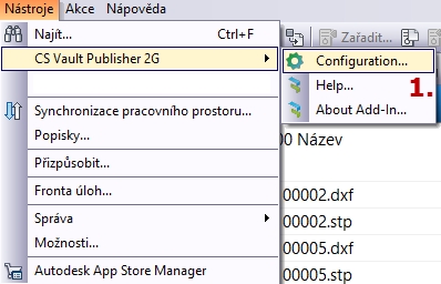 V klientovi Vaultu, rozbalovací nabídka Nástroje -> Vault Publisher -> Configuration (přihlášení uživatele jako Administrator)