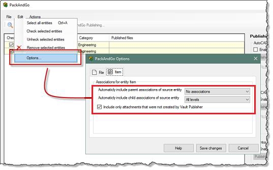 V PackAndGo je doplněna možnost načítání asociací ke zdrojové entitě. Jde o lokální nastavení PackAndGo. Načítání asociací je rozděleno podle entit. Změna načítání je dostupná v dialogu PackAndGo z menu ‚Edit -> Options…‘.
