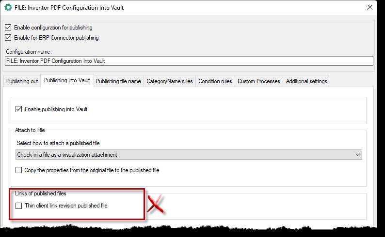 Dálev konfiguraci Vault Publisheru při publikaci do Vaultu není volba překladu odkazu do tenkého klienta – typ odkazu si řeší EC samo.
