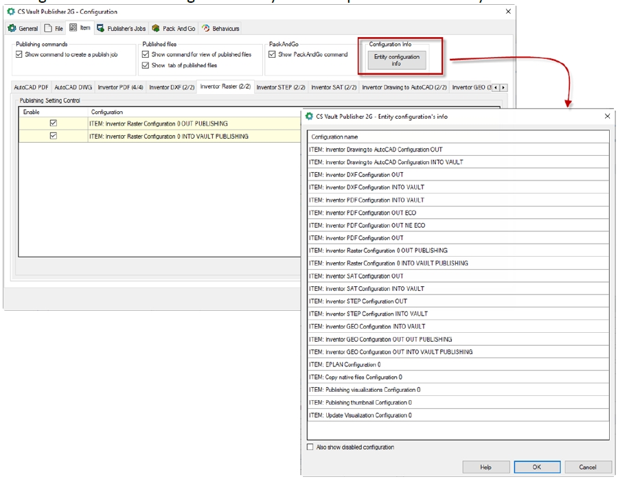 Tzn. jména konfigurací, které jsou zde v seznamu, se publikují, což znamená, že publikační job bude přirazen ke komunikaci ERP Connectoru a bude spracován po odkomunikování jobu ve výměnném rozhraní. Pro snazší získání jmen konfigurací, je do konfigurace Vault Publisheru doplněna volba pro zobrazení konfigurací - seznam konfigurace lze vybrat a zkopírovat do schránky.