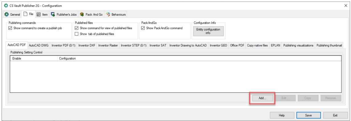 Use the “Add…“ button to add the publication settings