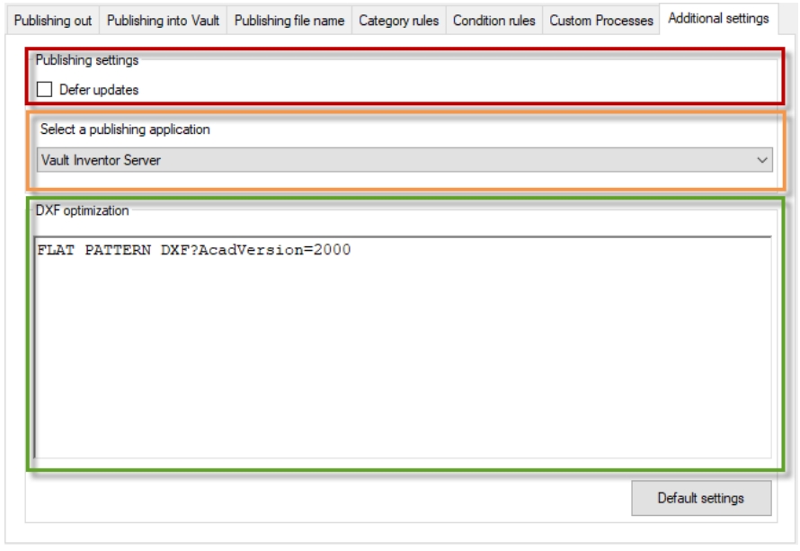 DXF optimization – to this field copy content of optimization*.ini file, obtained for example in Inventor for detailing set up resulting *.dxf file.