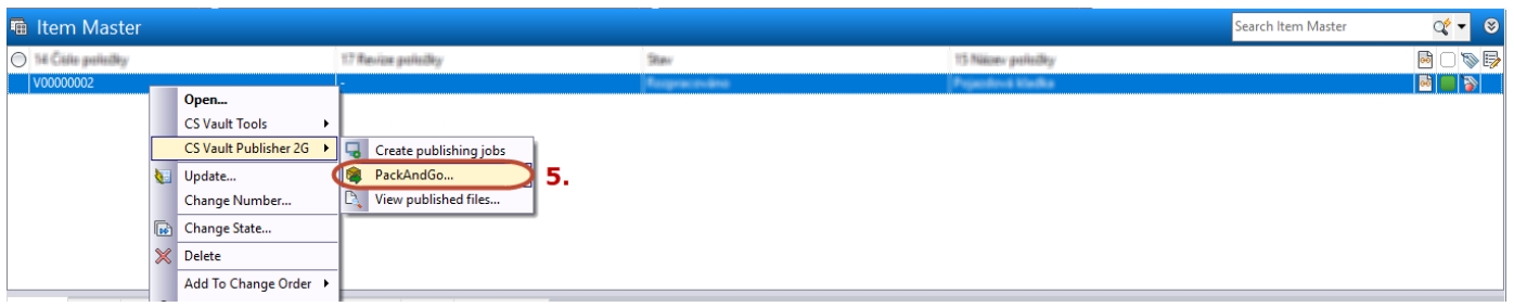 PackAndGo command can be called up in the Item Master by right-clicking on an Item from the Vault Publisher menu