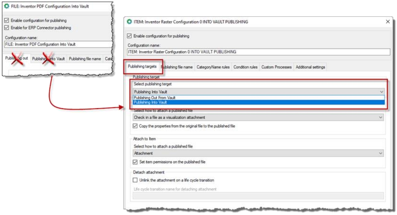 By Add-in update, configuration that has both targets (from and into the Vault) are automatically converted to separate configurations.