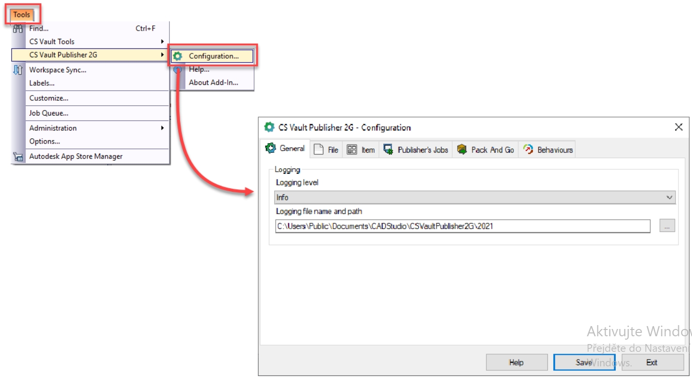 Publisher4VLT add-in configuration can be started in the Vault client from the menu Tools-> Publisher4VLT-> Configuration.