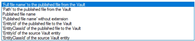 Parameters that relate to the published file can be added from the Internal parameters list and they are as follows: