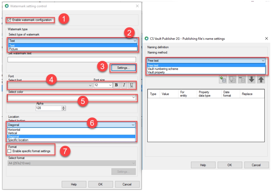 Font and size selection (for A3 full-page watermark, the font size is about 90)