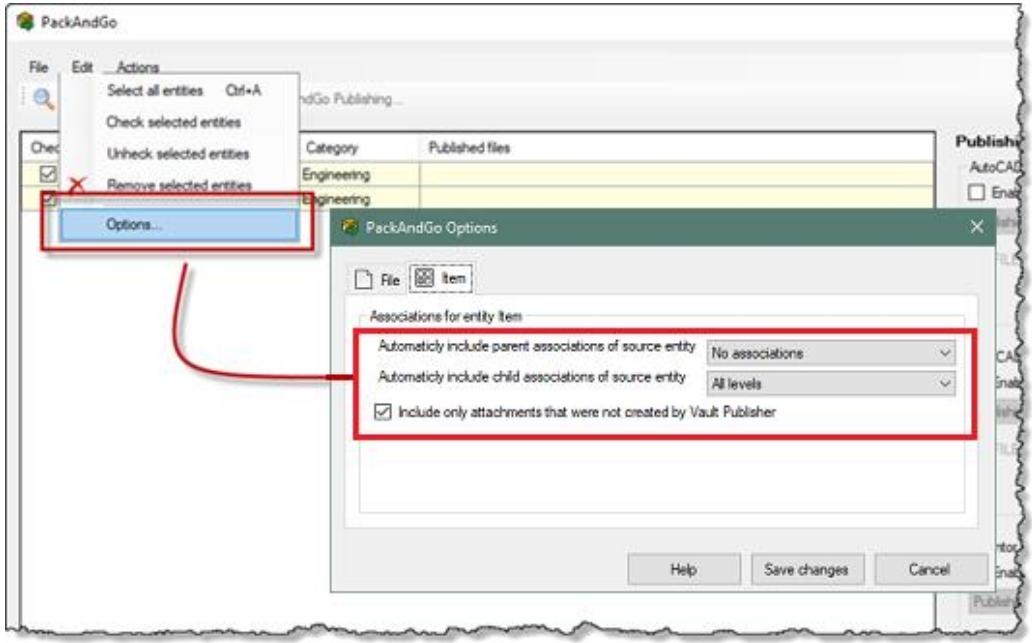 In PackAndGo, the possibility of loading associations to the source entity is addes. This is a local PackAndGo setting. Loading of associations is divided by entities. Changing of the loading is available in the PackAndGo dialog from “Edit -> Options…“ menu.