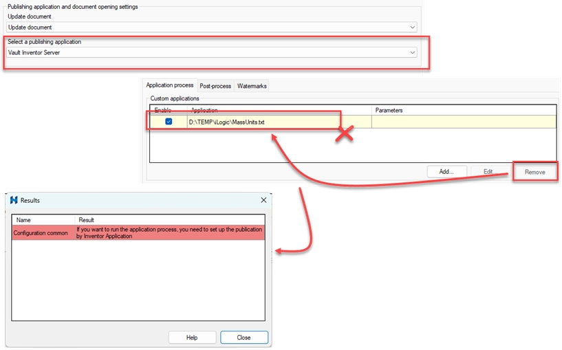 We fixed the error when saving the configuration of Inventor publishing modules if the publishing application "Inventor Vault Server" was set and the configuration for "Application process" had been removed.