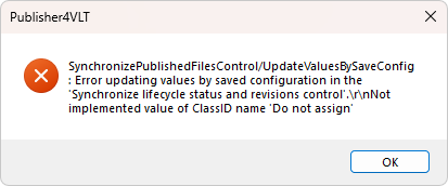 In some cases, the publication file was not disconnected when the item status was changed. The error occurred when the revision index was in the published file name, and the revision was incremented when the item's lifecycle state changed (for example, changing the state from „Release“ to „Work in progress“).