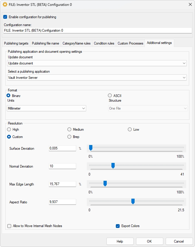 A new “Inventor STL” publishing module is available for files and items to publish Inventor models (ipt, iam) to the STL file format suitable for, e.g., 3D printing.
