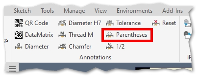 This command puts the dimension text into parentheses (round bracket). Only the default dimension text is taken into account.
