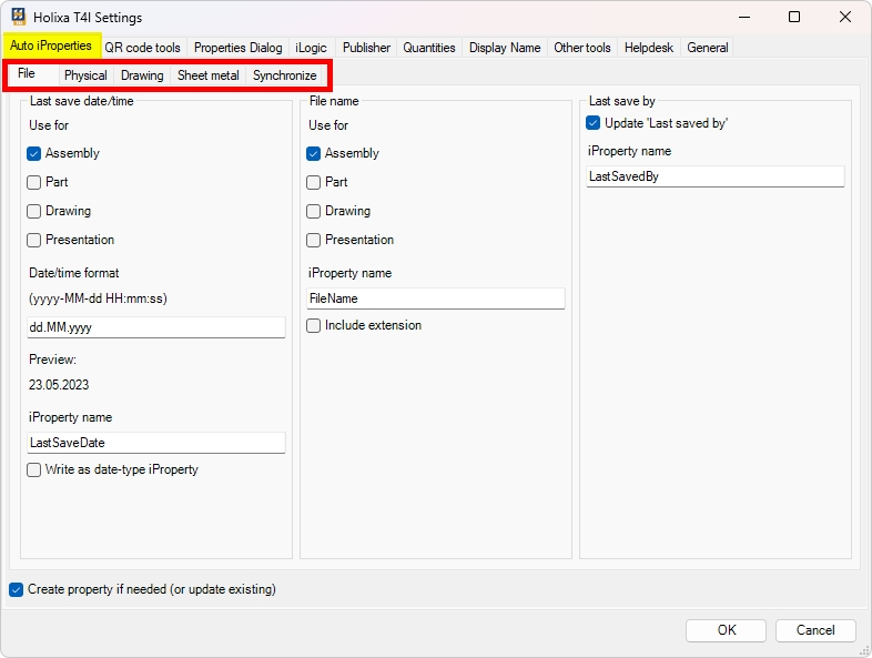Auto iProperties contains functionality for background automation of iProperties creation, filling, updating, and synchronization between model and drawing files.