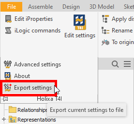 The *Export settings* command helps users easily save the Be.Smart T4I settings into an XML or REG file, which can then be shared with other users / deployed to multiple workstations, so the process of configuring multiple T4I installations is greatly reduced.