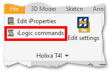 This tool provides an easy-to-use user interface for setting-up custom ribbon command buttons based on iLogic rules. The T4I app contains several examples located in the iLogic Commands section on the Holixa T4I ribbon.
