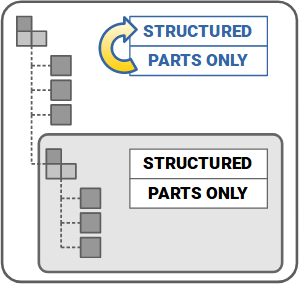 | Structured BOM before applying the command                                                                          | Parts Only BOM before applying the command                                                                         | Structured BOM after applying the command                                                          |