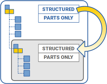 | Structured main assembly BOM before applying the command                                                            | Structured subassembly BOM before applying the command                                                                      | Structured subassembly BOM after applying the command                                                                      |