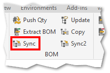 The Sync command copies the item numbers of the *Structured* BOM view of the current (main) assembly to the *Structured* BOM view of the subassemblies.