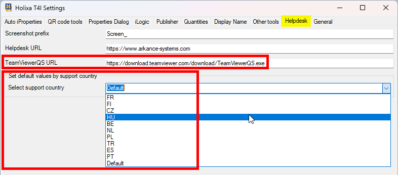 `Be.Smart T4I -> Be.Smart T4I -> Edit settings -> Helpdesk tab -> TeamViewerQS URL`