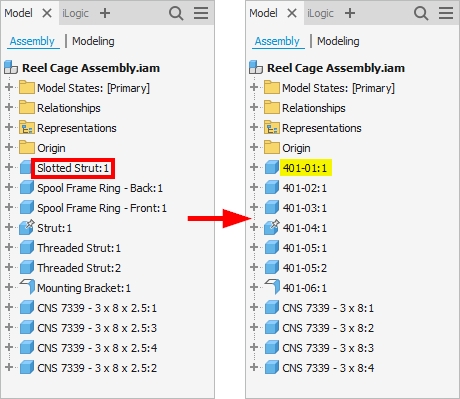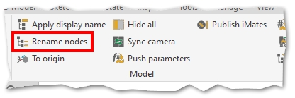 This command renames the top-level assembly component nodes. Unlike the Apply display name command, changes are not applied to child components and are visible only in the assembly in which the command was run.