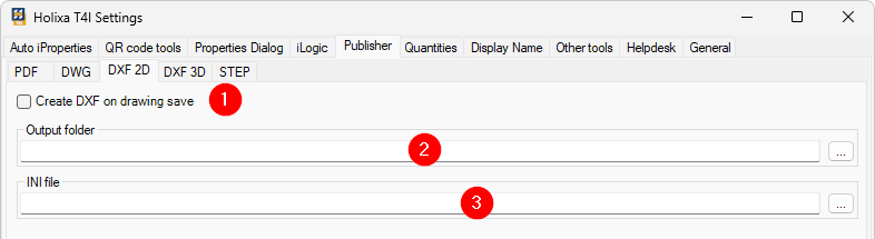 Holixa T41 -> Holixa T4I -> Edit settings -> Publisher -> DXF 2D