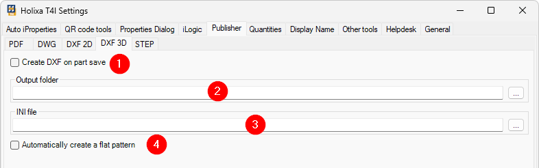 From the part file, the flat pattern is exported to a DXF folder next to the source file. The flat pattern has already to be present in a sheet metal file, or the Automatically create a flat pattern option has to be checked in Be.Smart T4I settings (see below).
