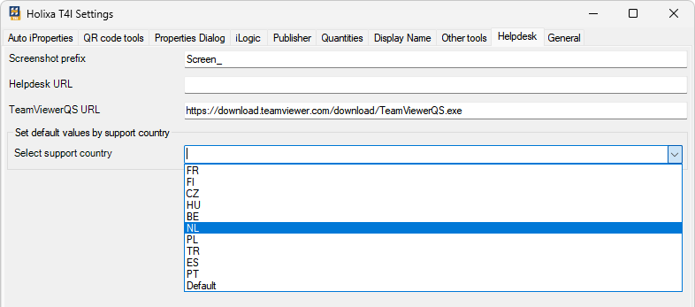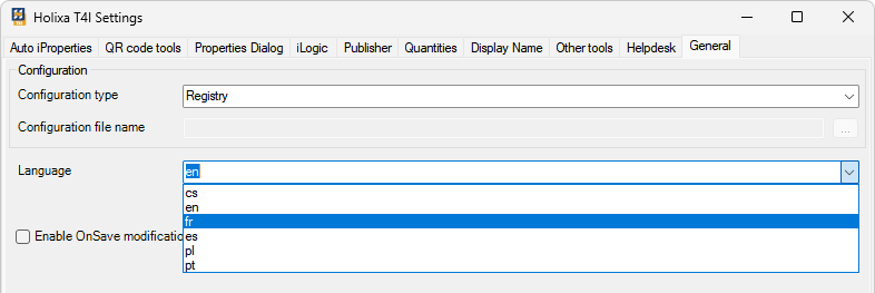 The language of your HolixaT4I user interface will be selected automatically based on the user interface language of your Inventor installation. You can change it anytime from `Holixa T4I Settings -> General` ribbon, `Language` drop-down list.