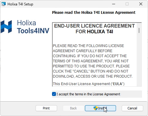 Read the license agreement thoroughly and accept it before continuing with the installation. Then click the Install button.