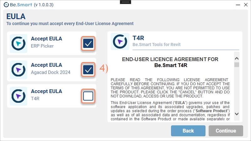 4) Accept all EULAs in order to continue