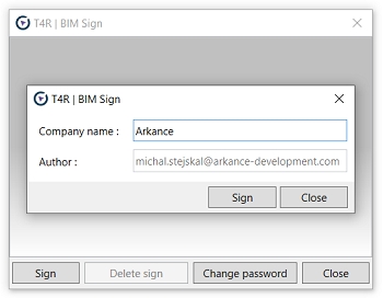 The function BIM Sign watermarks your BIM document (a RVT project, RFA family or template .RTE/.RFT) with a permanent invisible signature. At any moment, you can then read this signature from the document and prove ownership (intellectual property, IP) of the given document. The signature reading functionality is active even without the Holixa T4R license, e.g. after its Trial version expires.