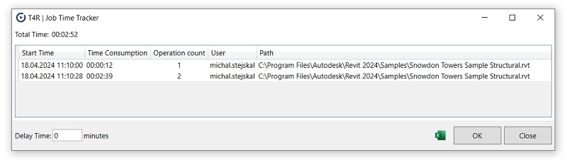 Net time in the individual Revit sessions (and timestamp of those sessions)
