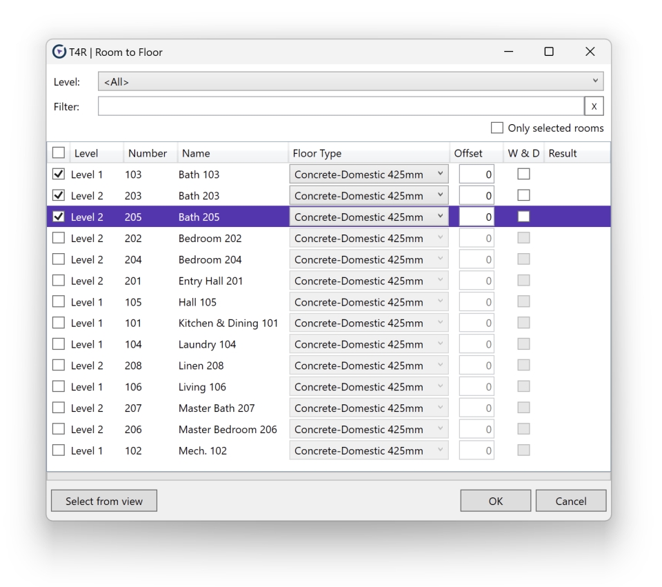 • Enhanced performance through refined filtering of wall inserts for each floor level. By creating floors with included inserts solely for the active building story view, we eliminate the need for Revit to render graphics, significantly reducing the largest factor in performance slowdown.